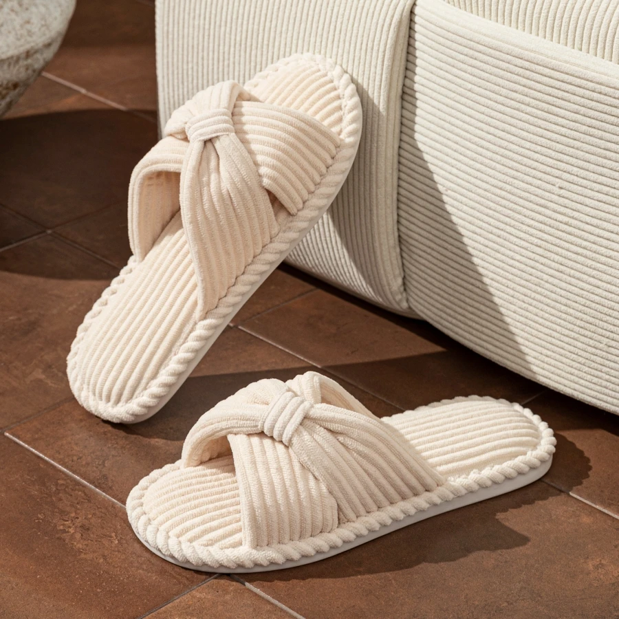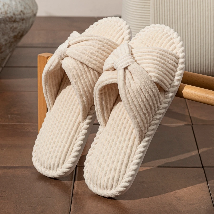 Bow Fashion Women's Slippers Indoor Bedroom Soft Sole Exquisite Exposed Toe Dry Lightweight Comfortable Home Shoes
