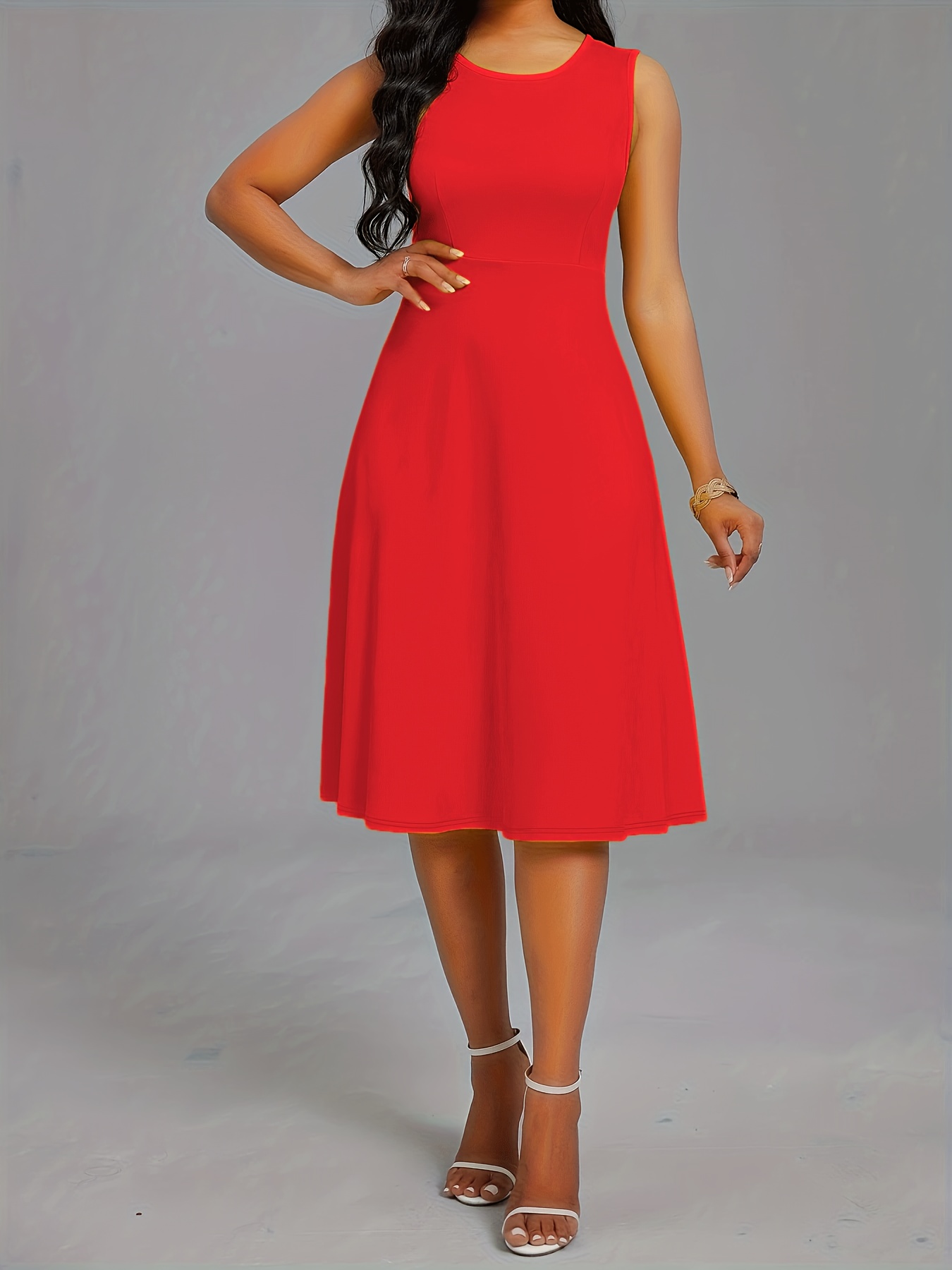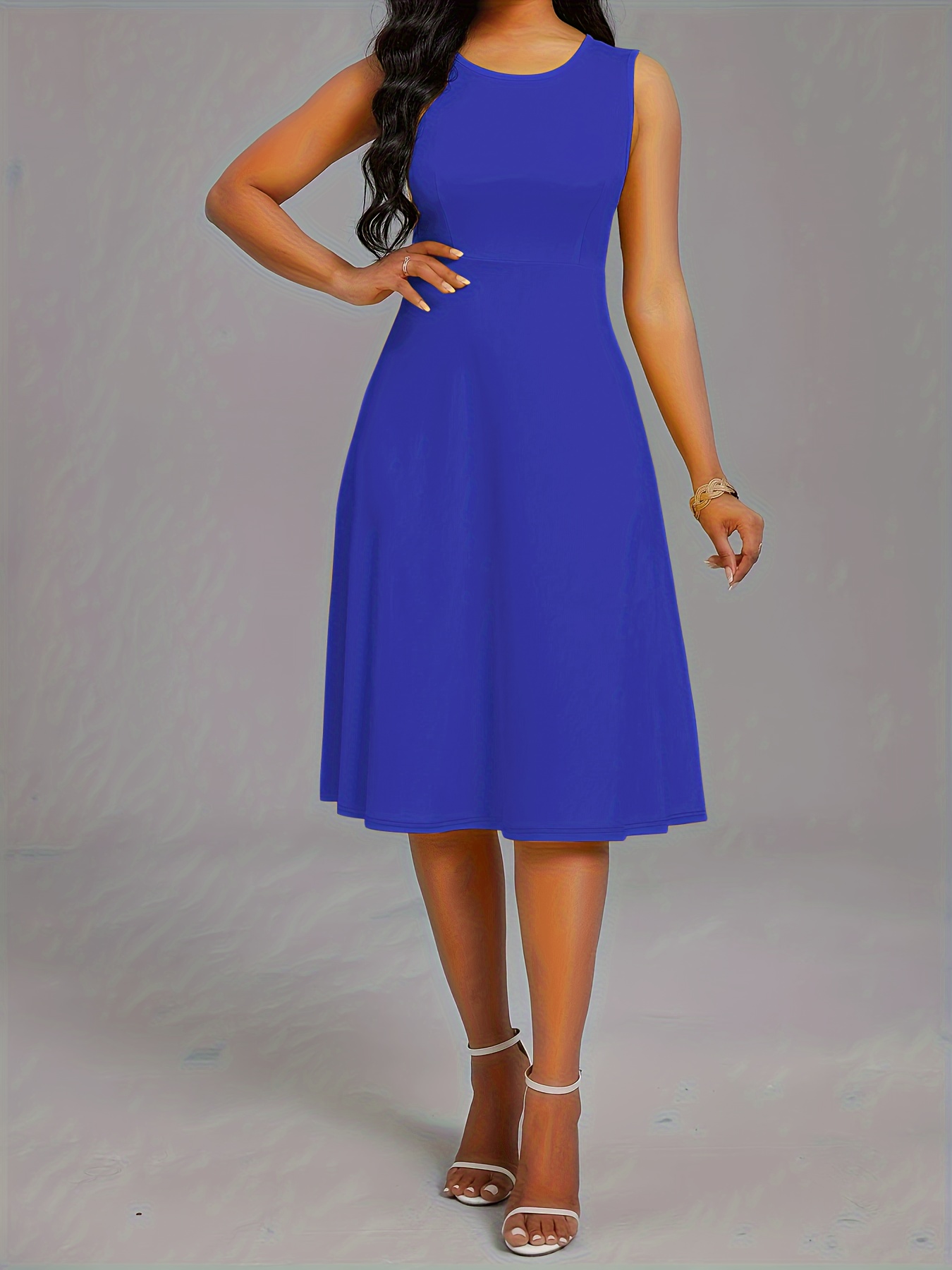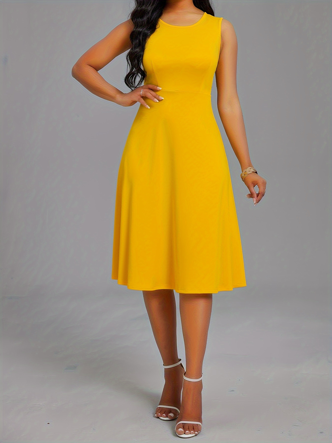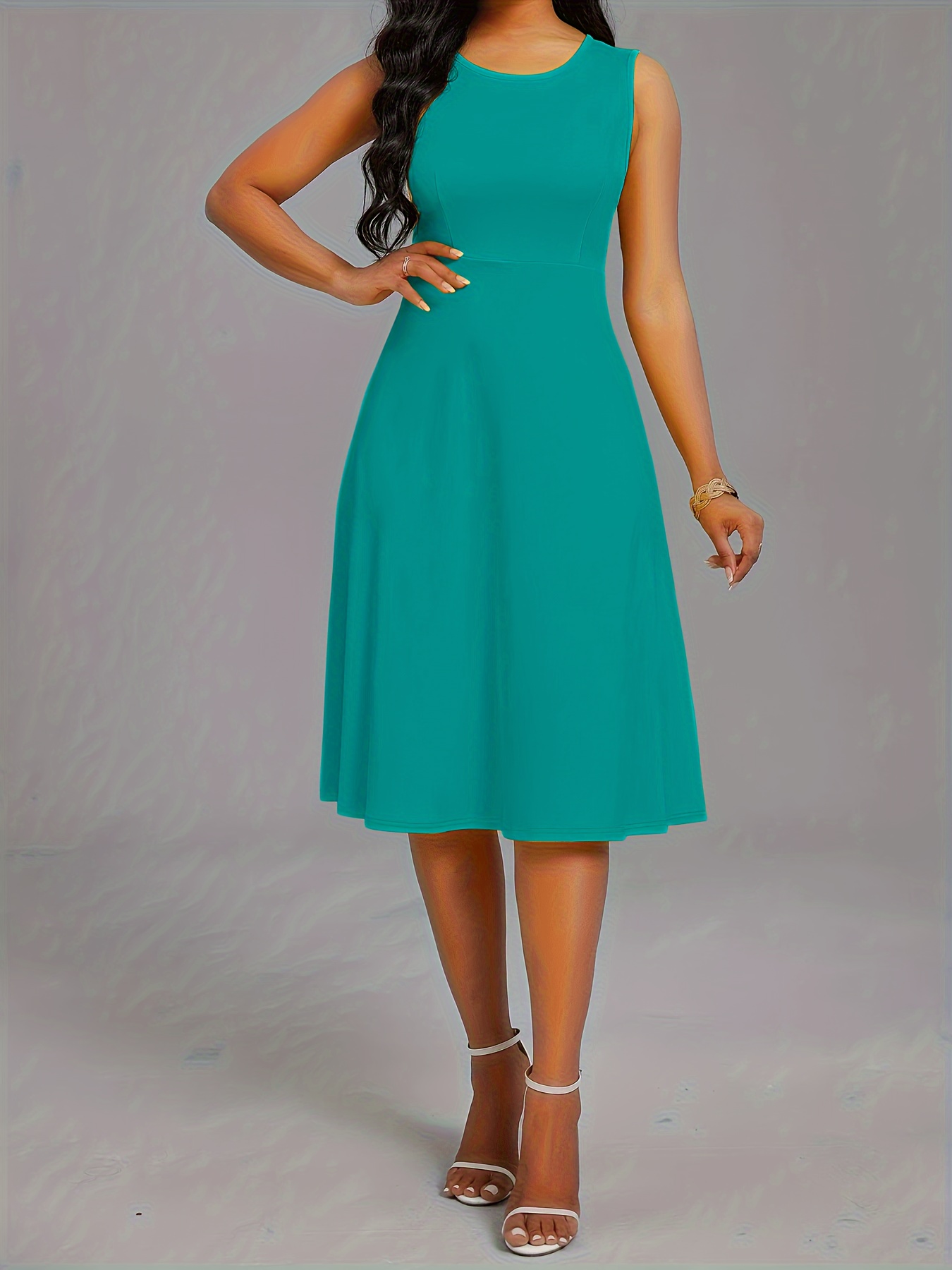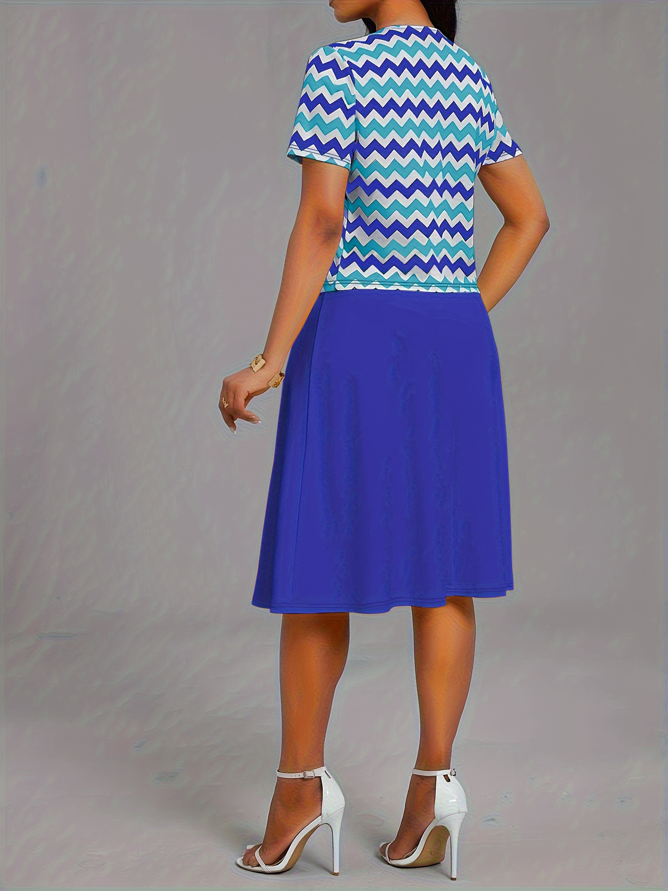 Chic Spring & Summer Dress Set - Stylish Wave Pattern Open Front Cardigan & Soft Solid Color Crew Neck Dress Outfit - Perfect for Casual Elegance