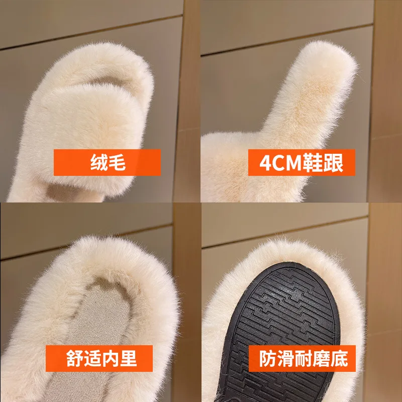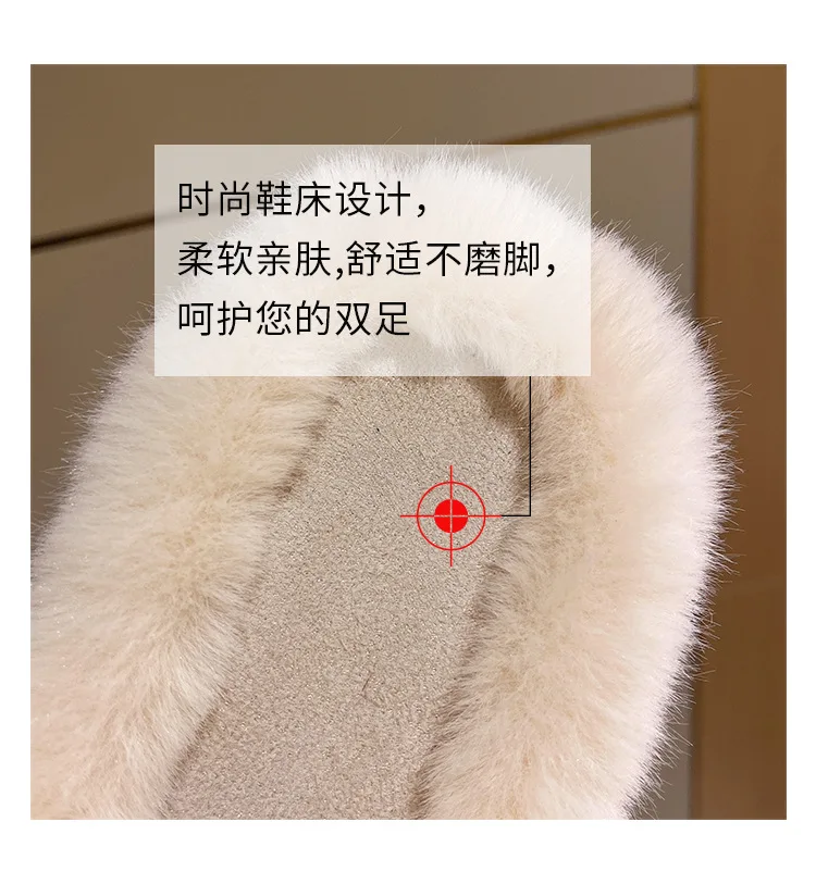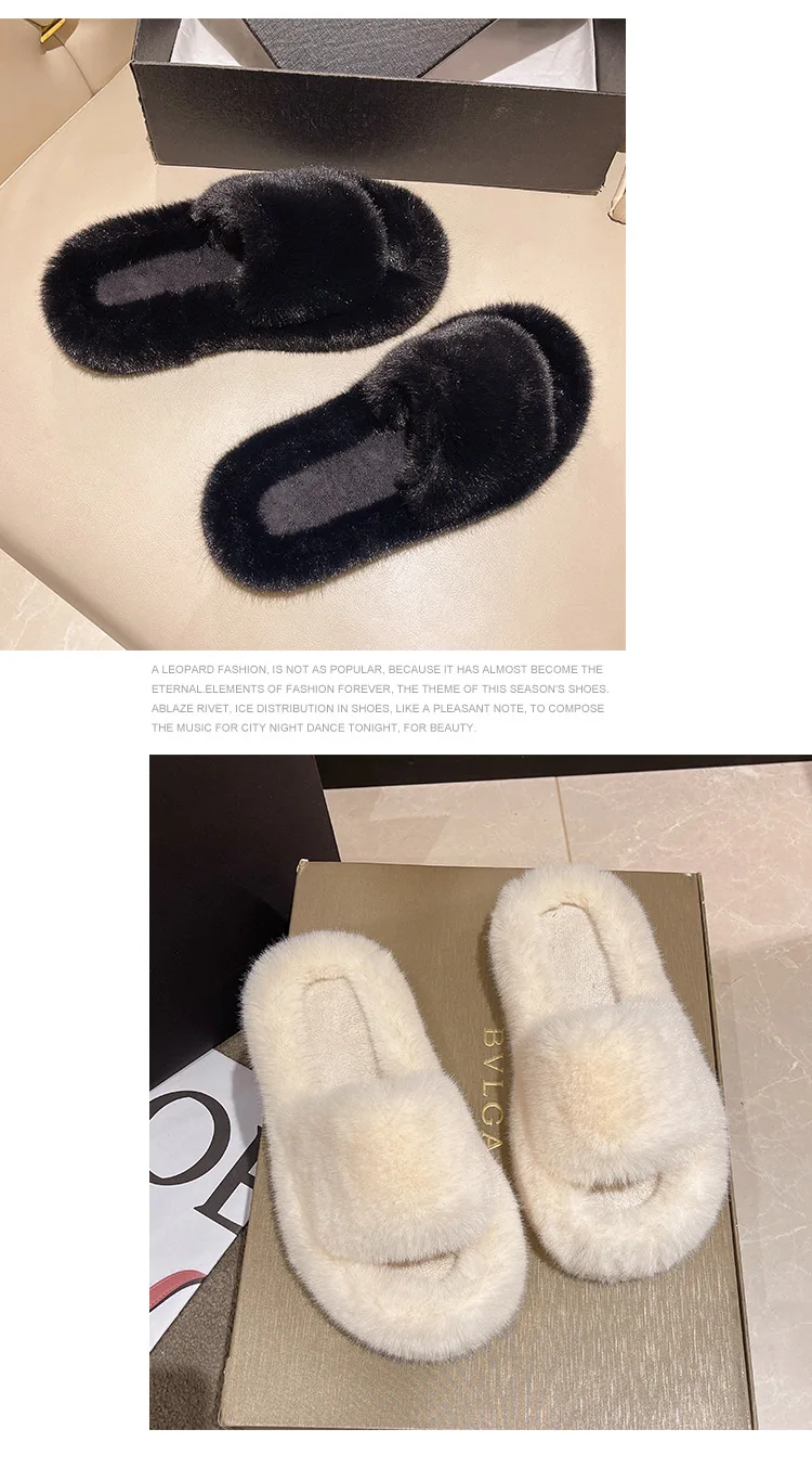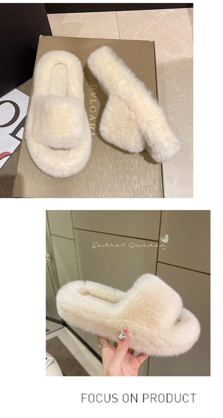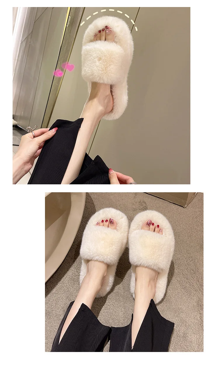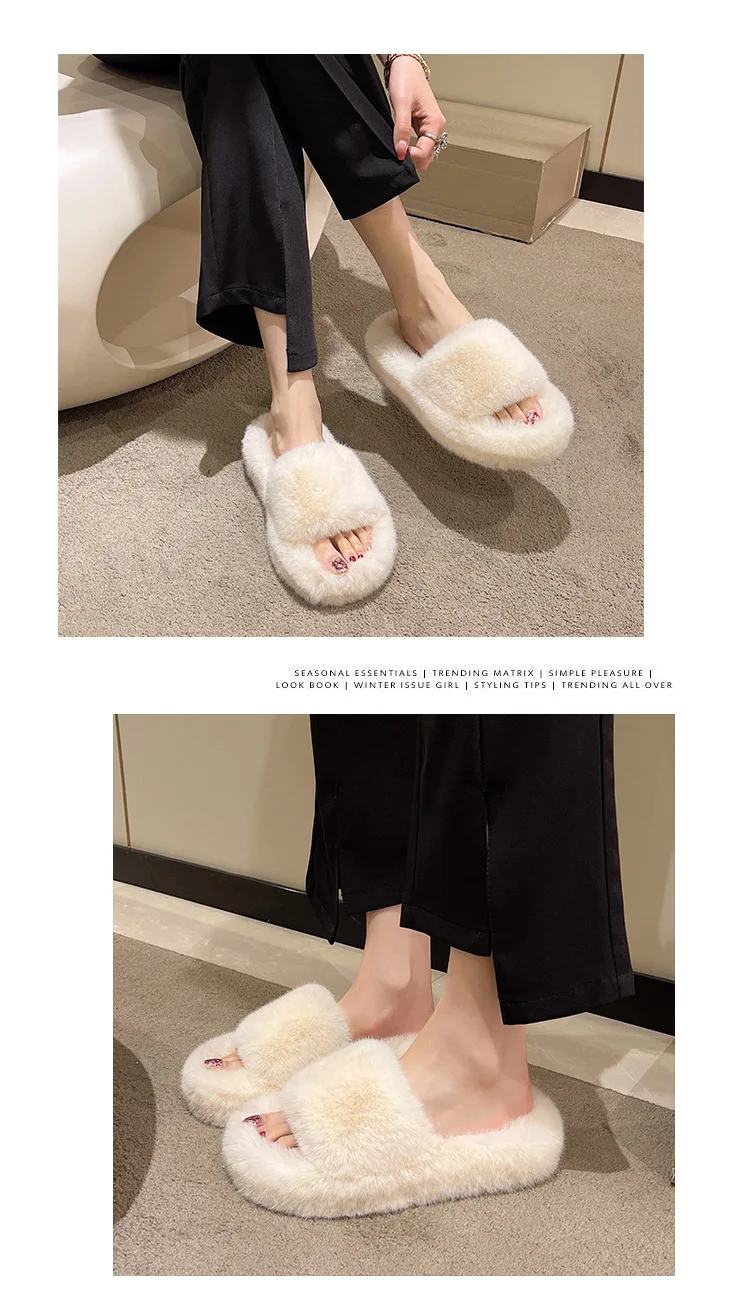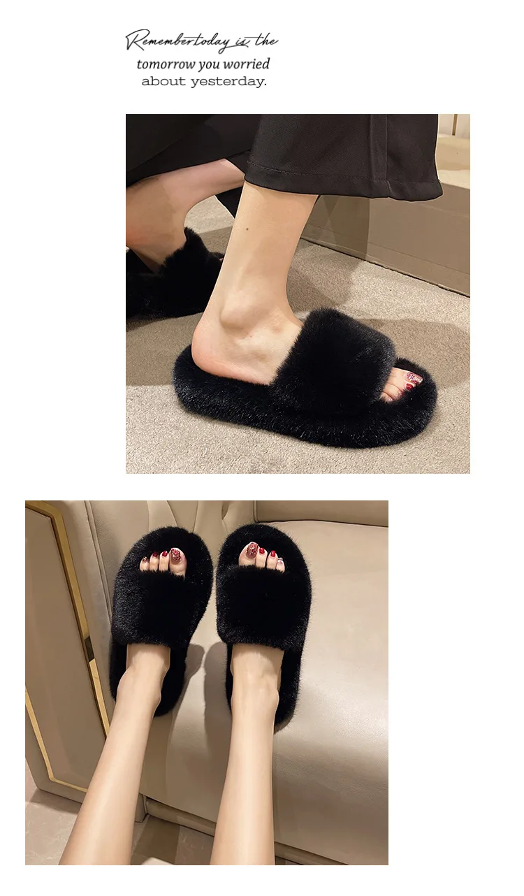 Home Slippers Women's Flat Shoes Female Lady Fur Flip Flops Slides 2023 Soft Plush Cotton Indoor Winter Zapato Mujer