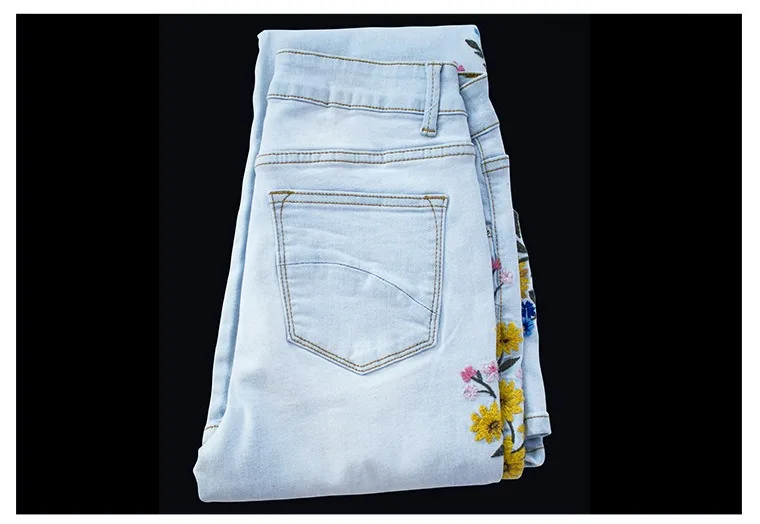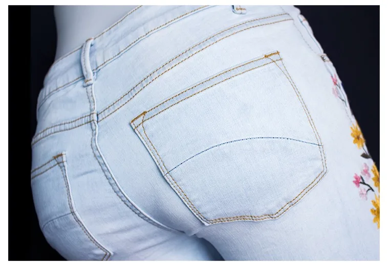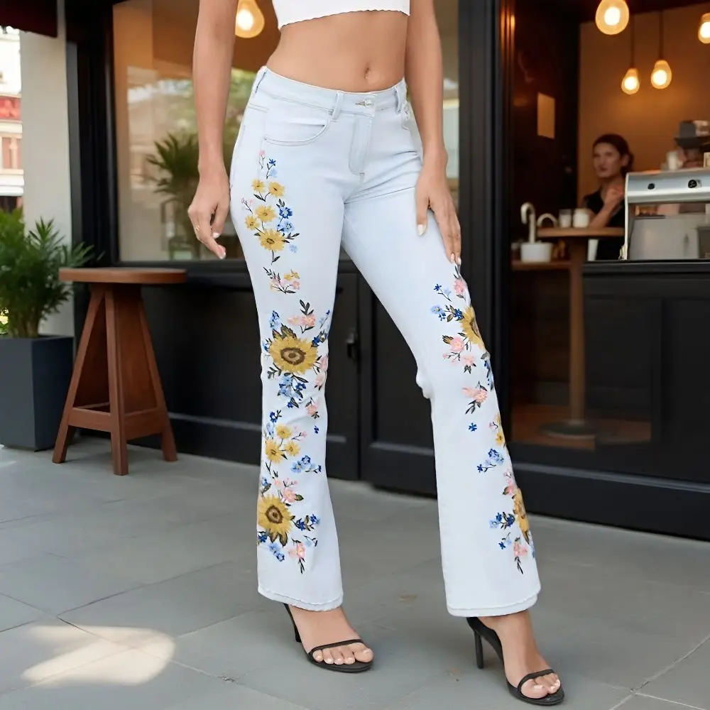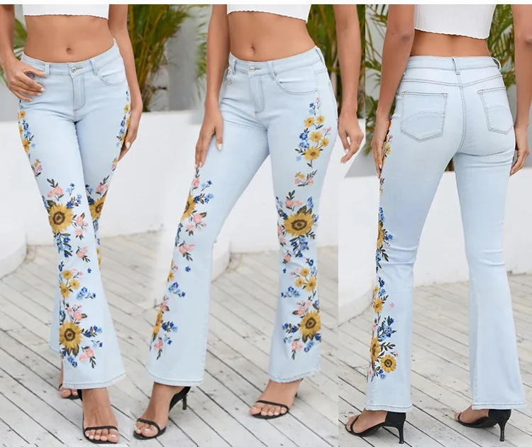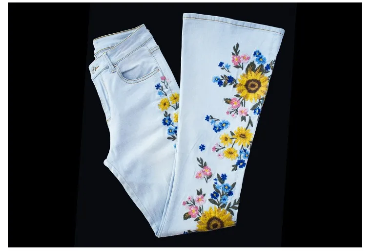Stretch Flared Jeans Embroidery Flower Design Women Denim Pants Boot Cut Wide Leg Trousers Vintage Runway Bell Bottom Harajuku