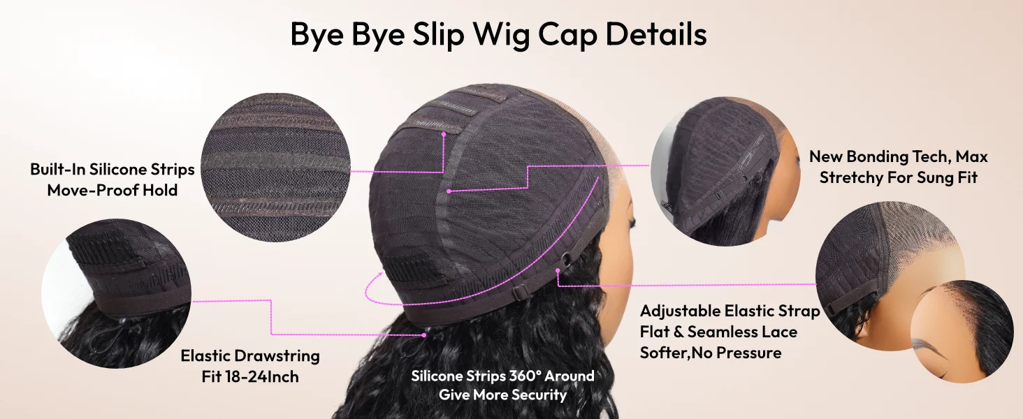 UNice 7x5 Bye Bye Slip™ Glueless Wig Balayage Highlight Body Wave Human Hair Wig With Drawstring 150% 180% Density